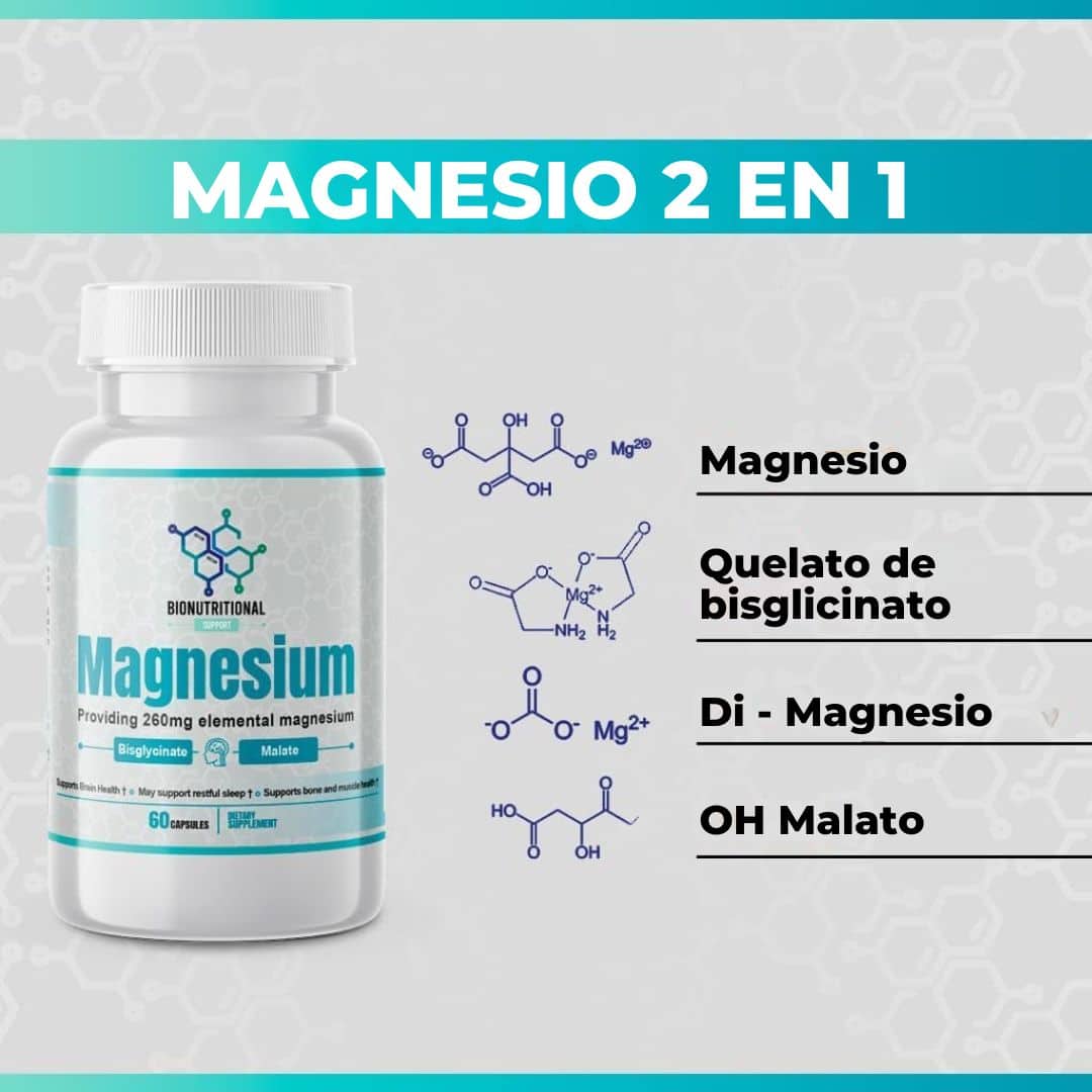 El Bisglicinato y Malato de Magnesio es un suplemento mineral diseñado para acompañar el bienestar integral y el equilibrio del organismo dentro de una rutina diaria saludable.