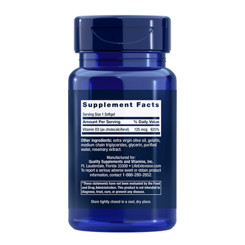 LIFE EXTENSION – Vitamin D3, 125 mcg (5000IU), 60 Softgels