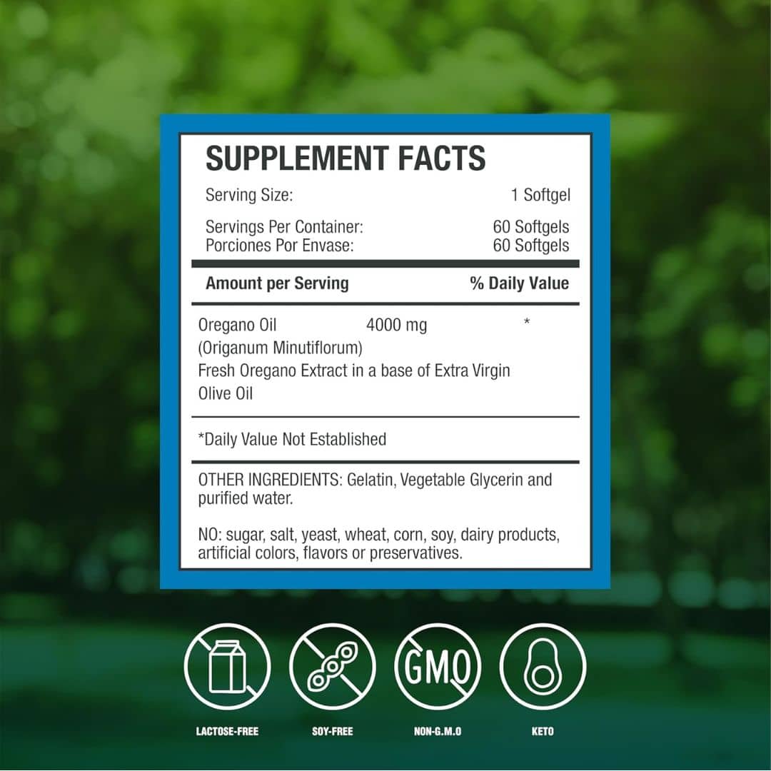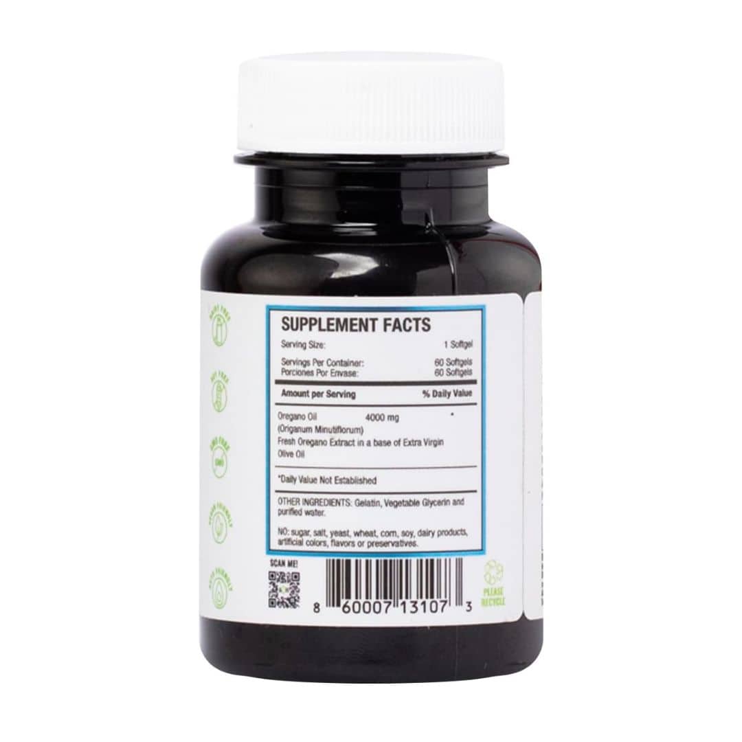 Oregano Oil es un suplemento natural de aceite de orégano con 4000 mg por cápsula. Aporta beneficios digestivos, antioxidantes y antimicrobianos. Apoya el sistema inmunológico, combate inflamación y fortalece tu salud intestinal. Fórmula pura, concentrada y libre de aditivos artificiales. 60 Cápsulas.
