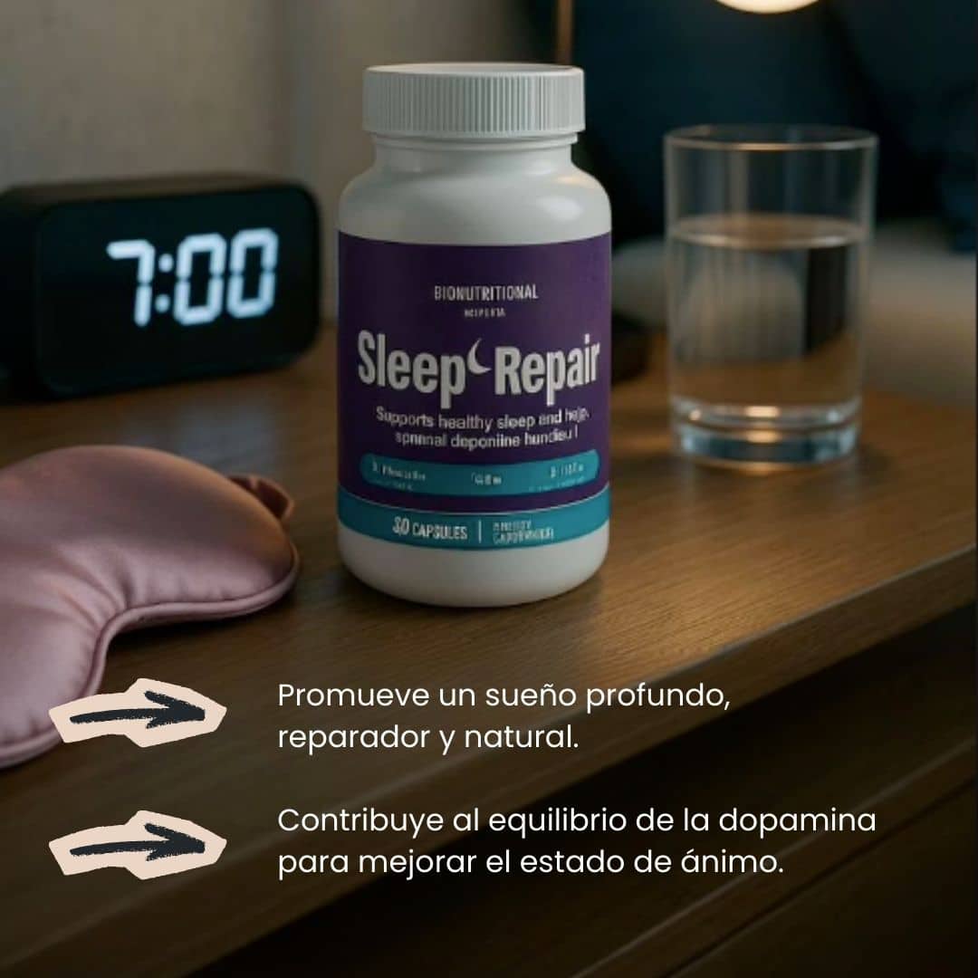 Sleep Repair es una fórmula natural diseñada para acompañar el descanso y el bienestar integral como parte de una rutina nocturna saludable.